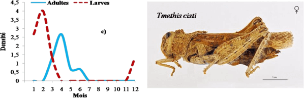 Ces Acrididae passent l’hiver en diapause larvaire. Ces résultats sont en accord avec ceux de Moussi (2012) dans la région de Biskra. La même observation a été réalisée pour Tmethis cisti dans la région de Djelfa par Khadraoui & Ouanouki (2001).