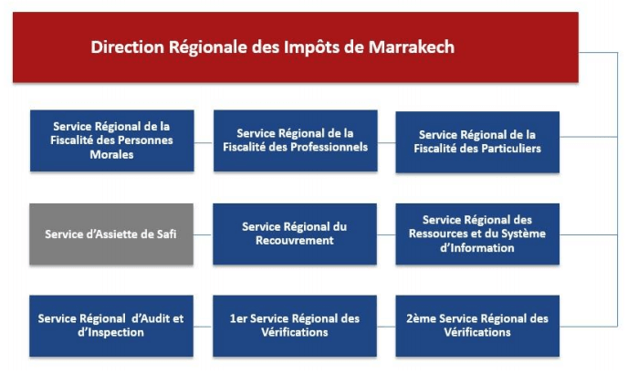 212.La Direction Générale des Impôts s’appuie sur une organisation territoriale déconcentrée regroupant 8 directions régionales des impôts, (Agadir, Béni Mellal, Casablanca, Errachidia, Fés, Marrakech, Oujda, Rabat et Tanger).