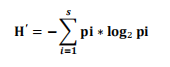 La détermination de l’indice de Shannon-Weaver au niveau des différentes stations durant les différentes saisons nos permet de suivre la dynamique de la biodiversité Acridienne au niveau de chaque station. Cet indice est calculé de la manière suivante : (Marcon, 2010).