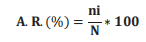 L’abondance relative (A.R. %) des espèces d’Orthoptères a été calculée comme le nombre d’individus de l’espèce (i) par rapport au nombre total d’individus de toutes les espèces recueillies sur chaque site (Zaime & Gautier, 1989).