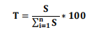 T : est le taux de consommation d’une espèce végétale donnée est le pourcentage de surface foliaire de cette espèce ingérée par un Acridien, rapporté à l’ensemble des surfaces foliaires ingérées.